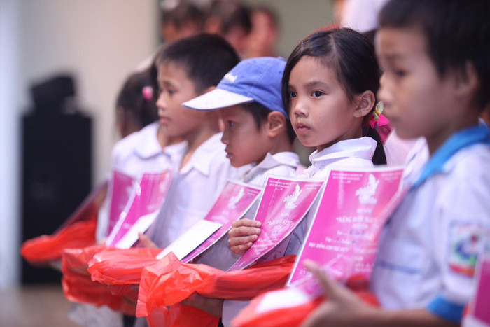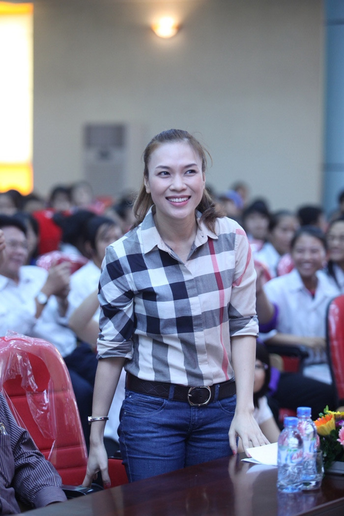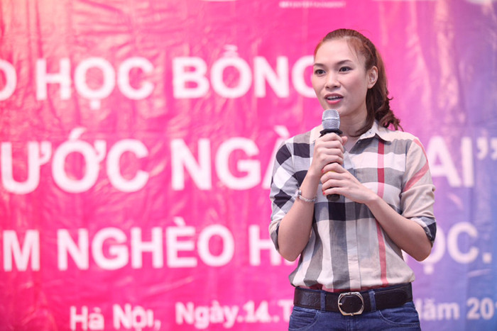 | Mỹ Tâm diện áo sơ-mi và quần jeans giản dị với gương mặt trang điểm nhẹ nhàng. Cô đến trao học bổng cho các học sinh nghèo xuất sắc ở Thanh Trì. Món quà tuy không lớn nhưng là sự cổ vũ ý nghĩa cho các em. |