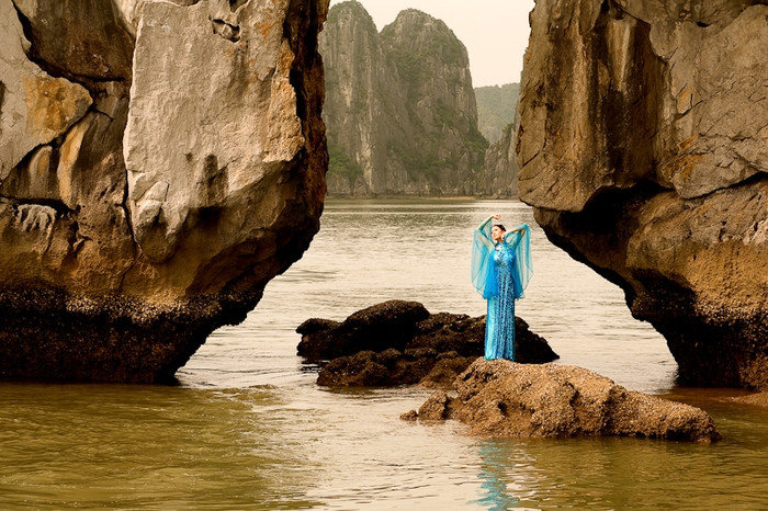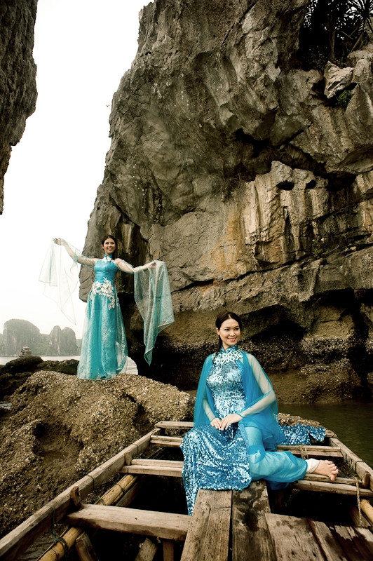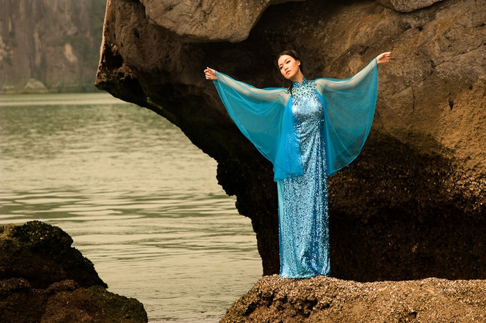 | Theo lời Ngọc Hân, sở dĩ cô và Thùy Dung chọn bộ áo dài màu xanh vì màu sắc này nói lên sự hòa quyện giữa trời mây và nước. Màu xanh cũng nói lên niềm hy vọng Hạ Long sẽ trở thành một trong 7 kỳ quan thiên nhiên mới của thế giới. |