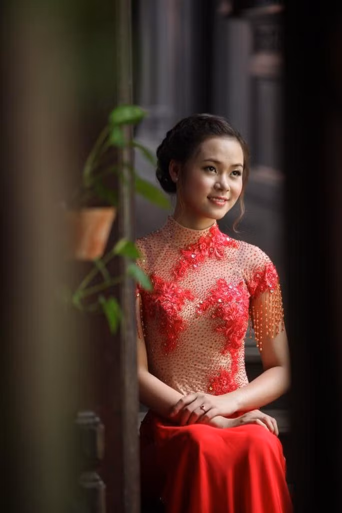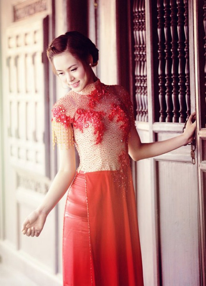 | Trong những bộ áo dài truyền thống Thảo toát lên vẻ đẹp đằm thắm, dịu dàng khiến nhiều phải xao xuyến mà ghen tỵ |