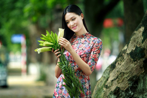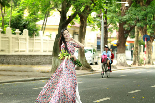 (GDVN) - Dưới góc máy của nhiếp ảnh Hải Bá hình ảnh Hoa hậu Thùy Dung chụp trên đường phố Hà Nội khiến nhiều người thổn thức và thêm yêu Thủ đô. Áo dài: Thuận Việt.