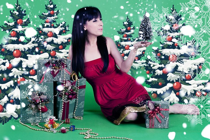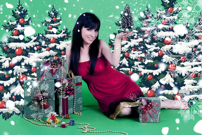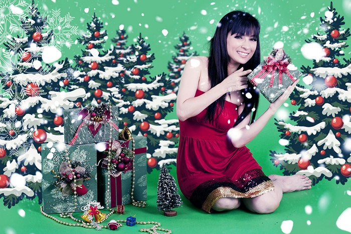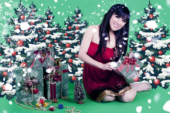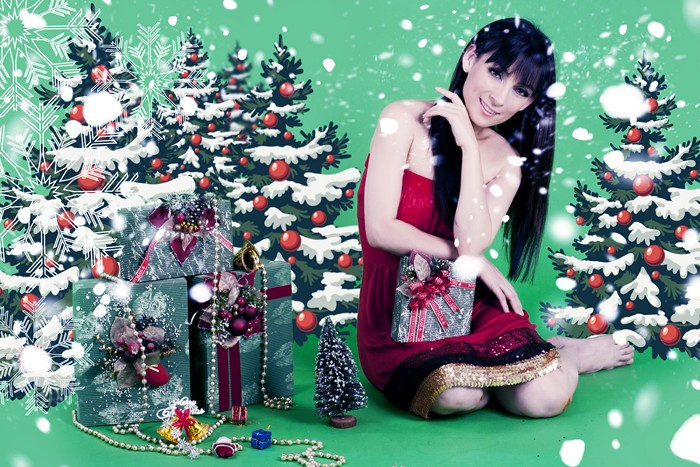 | Bấy lâu, mỗi khi bước ra sân khấu, Phi Nhung tạo cảm giác thân thuộc với khán giả bằng tà áo dài duyên dáng và một giọng hát ngọt ngào qua những ca khúc mang âm hưởng quê hương nổi tiếng: Bông điên điển, Duyên quê, Làm dâu xứ lạ… Vì vậy, khán giả sẽ rất bất ngờ khi thấy một Phi Nhung đẹp trắng trẻo, trong ngần làm dáng bên những cây thông, những món quà Noel. |