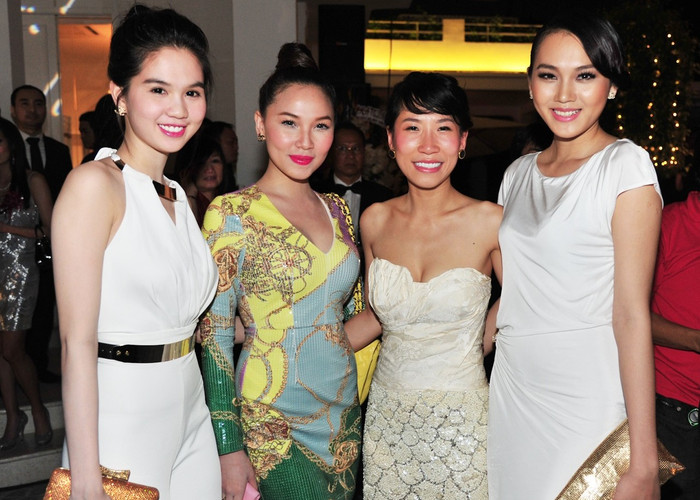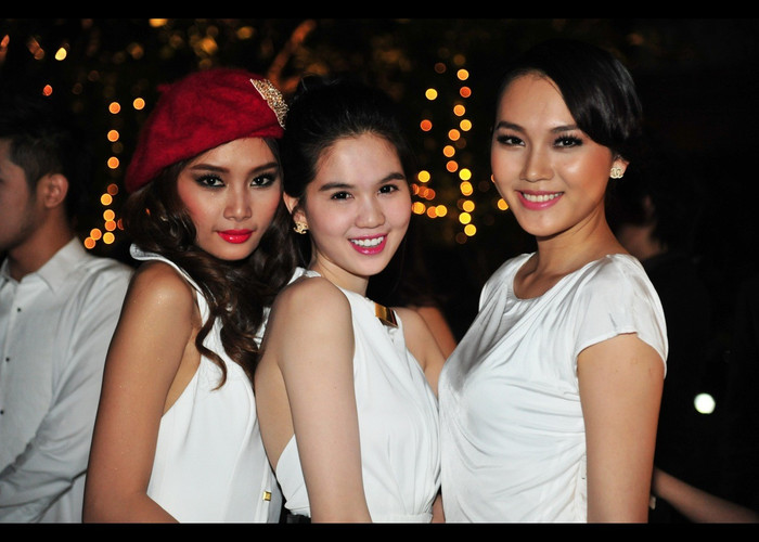 | Trong chiếc đầm trắng nền nã, Ngọc Trinh luôn sánh bước củng Quỳnh Thư. |