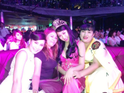 | "Nữ hoàng dao kéo" Phi Thanh Vân tạo dáng chụp hình cùng một số diễn viên khác trong bộ phim cô tham gia |