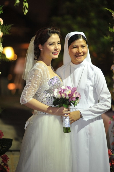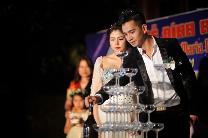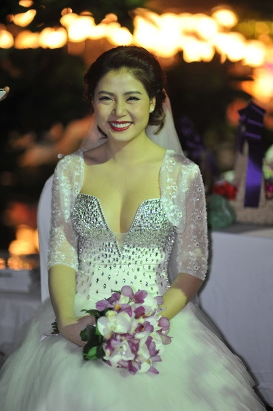 | Lễ đính hôn của Ngọc Hiền được tổ chức long trọng ngoài trời tại Soft Water Hồ Tây (Hà Nội) vào tối qua (6/12). |