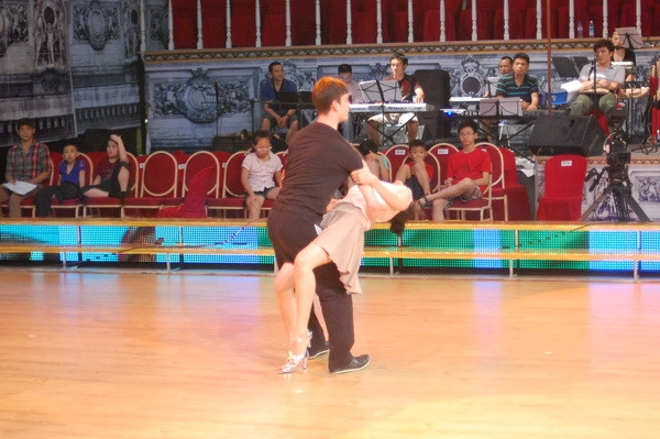 | Cô bị bạn nhảy quăng như...chong chóng. |
