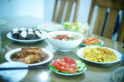 Mâm cơm gia đình Ngọc Quyên ngày cuối năm.