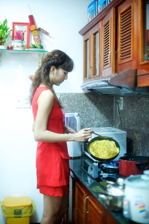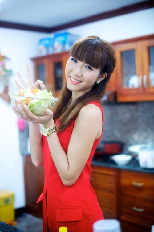 Theo chân Ngọc Quyên xem cách cô chuẩn bị bữa ăn cuối năm mới thấy người đẹp này kỹ tính và quan trọng chất lượng bữa ăn. Thường thì mâm cơm gia đình Ngọc Quyên rất nhiều rau và trái cây. Ngọc Quyên cho biết đó cũng là cách để cô giữ da và giữ dáng.