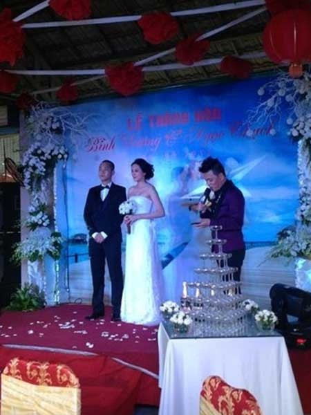 Trong ngày lên xe hoa, Ngọc Thạch diện chiếc váy cúp ngực có gắn đuôi dài 3m. Cô không gắn khăn voan như mọi cô dâu khác. Trong khi đó, chú rể Bình Dương mặc vest bảnh bao với tông màu đen.