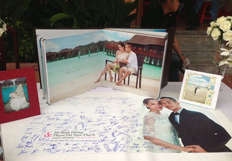 | Tiệc cưới diễn ra tại một nhà hàng ở Hậu Giang, quê hương cô dâu. |