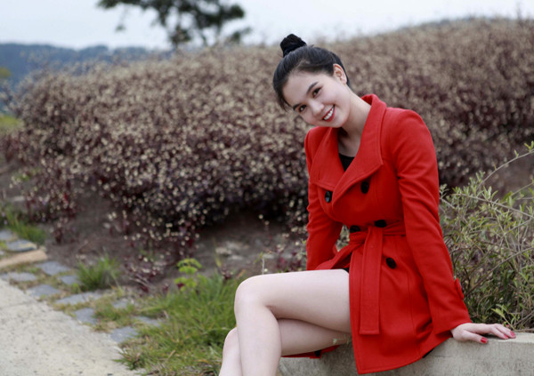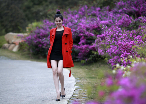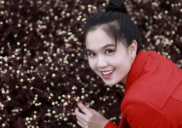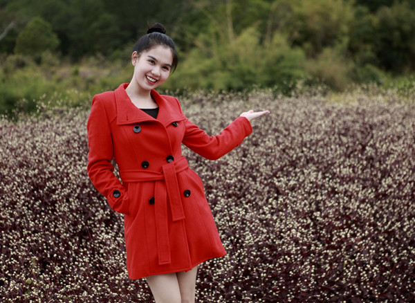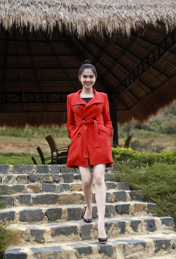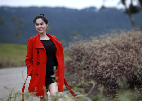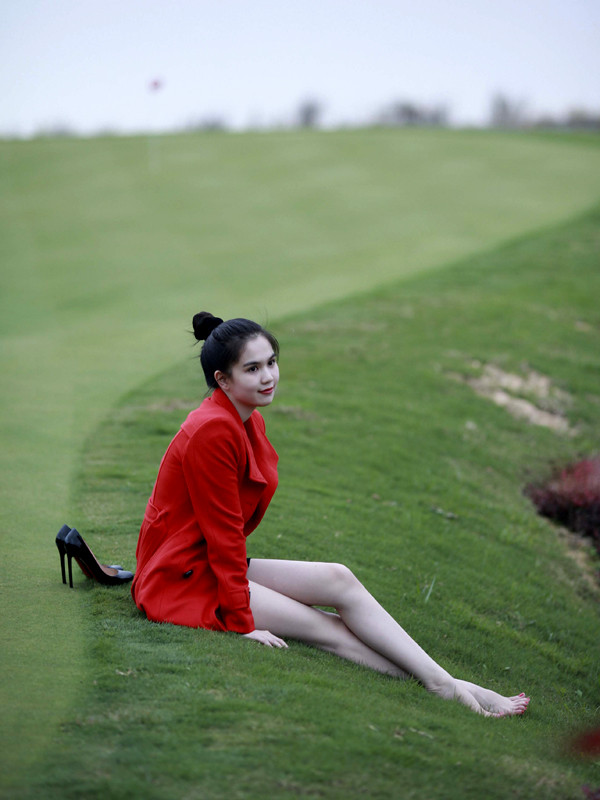Một chiều đông se lạnh ở Đà Lạt, "nữ hoàng nội y" đã có những bước chân thảnh thơi giữa bạt ngàn hoa cỏ. Tuy không xuất hiện với hình ảnh mặc nội y quen thuộc nhưng Ngọc Trinh cũng khéo diện váy ngắn khoe đôi chân trần trắng gợi cảm. Có lúc, cô gái gắn với nhiều scandal ngẫu hứng tháo hẳn đôi giày gót cao đến chừng 20cm để đi chân trần.