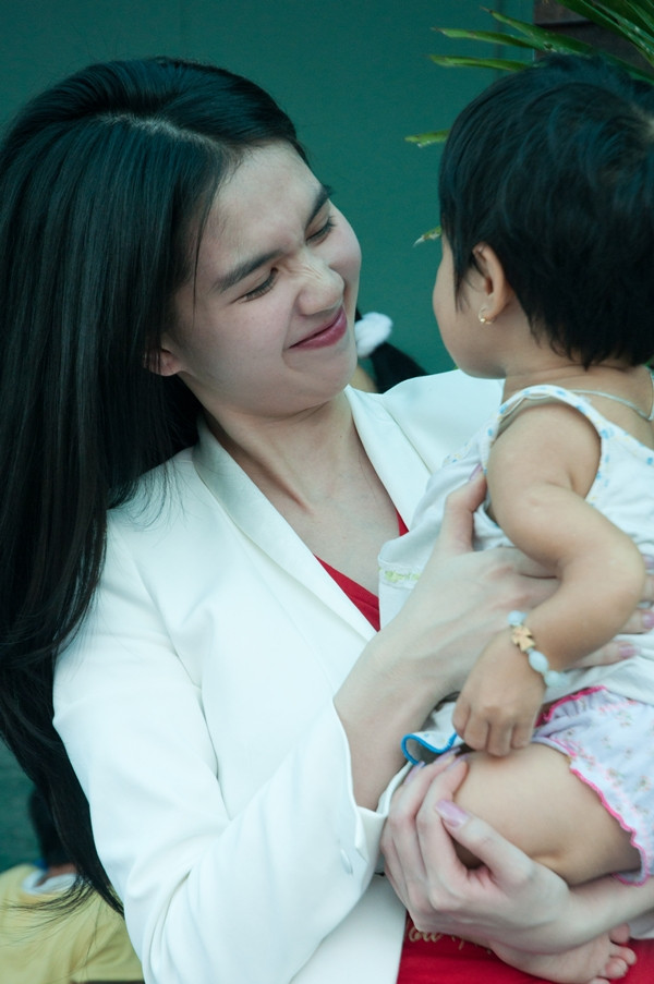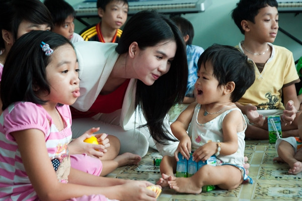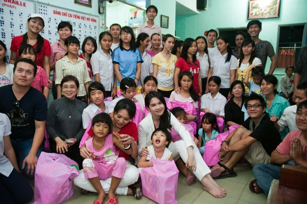| Buổi từ thiện do BTC cuộc thi Hoa hậu người Việt hoàn cầu từ bên Mỹ về Việt Nam tổ chức. Lần này, đoàn từ thiện đi tặng quà các em nhỏ bị ung thư xương thủy tinh và khiếm thị tại TP.HCM. |