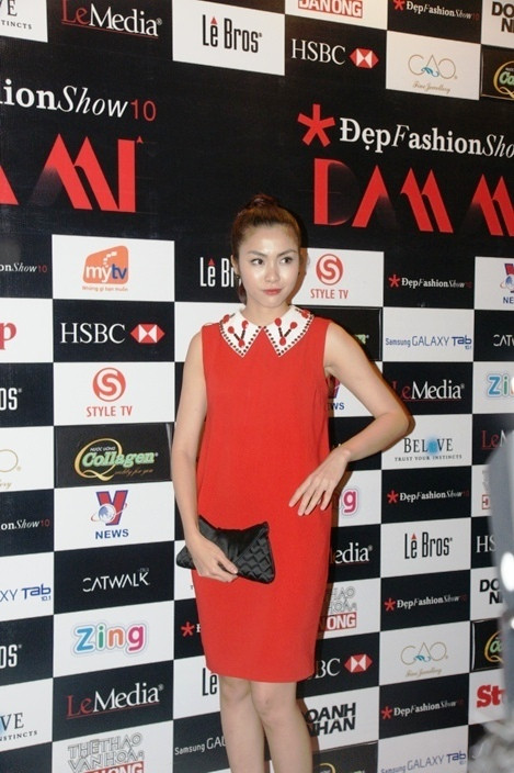 | Trong khi đó Tăng Thanh Hà lại đỏ rực với bộ váy xinh xắn đáng yêu. |