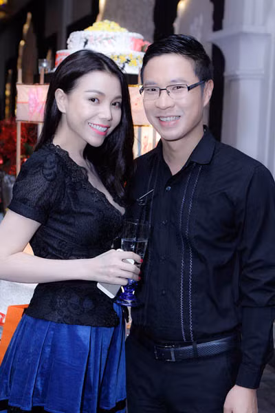 | Trà Ngọc Hằng bên gia đình của mình trong ngày sinh nhật |