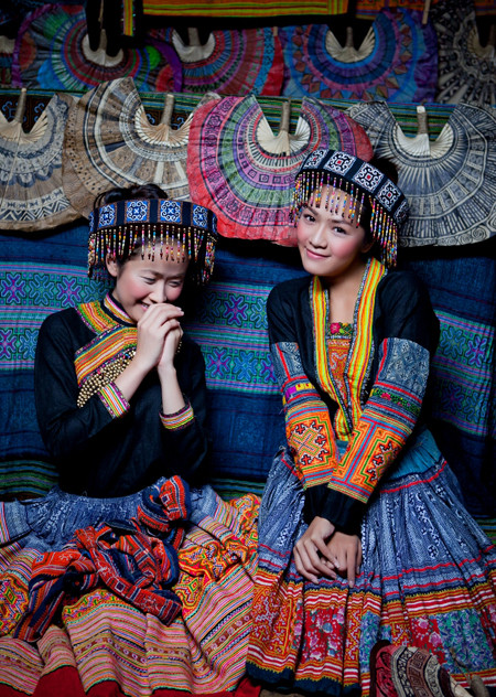 | Quạt giấy, váy hoa xòe và mũ đội đầu mang đến khúc biến tấu sắc màu rực rỡ, thể hiện nét văn hóa miền cao. |
