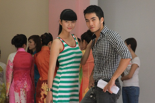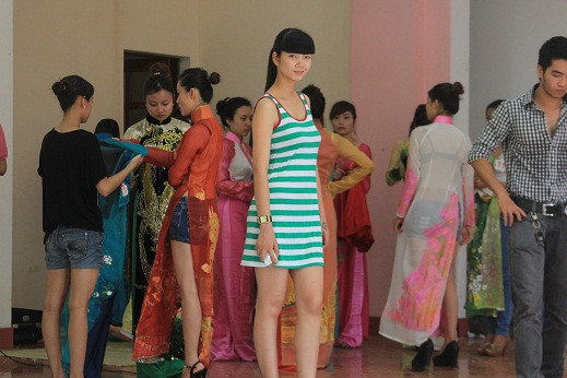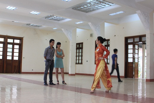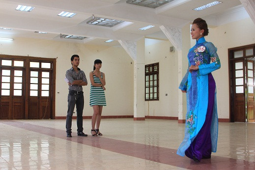 | Chỉ đạo phần diễn áo dài của thí sinh. |