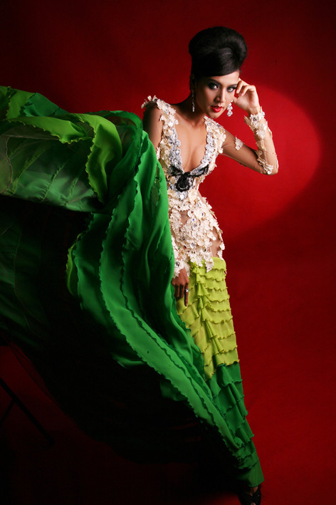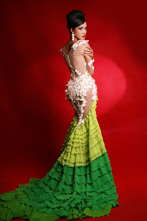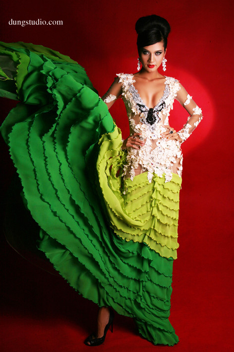 (GDVN) - Dưới góc máy nhiếp ảnh gia Dũng Lê, người mẫu Quanh Dy hiện lên đầy cá tính, có phần nổi loạn với chiếc váy sặc sỡ. Ảnh, ý tưởng: Dũng Lê, Trang phục: Văn Hà.