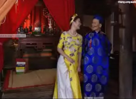 | NSƯT Phạm Bằng và NSƯT Kim Oanh trong bộ phim hài Tết Chôn Nhời với bối cảnh diễn ra ở tòa nhà thờ ở làng cổ Đường Lâm. Ảnh Đỗ Doãn Hoàng. |