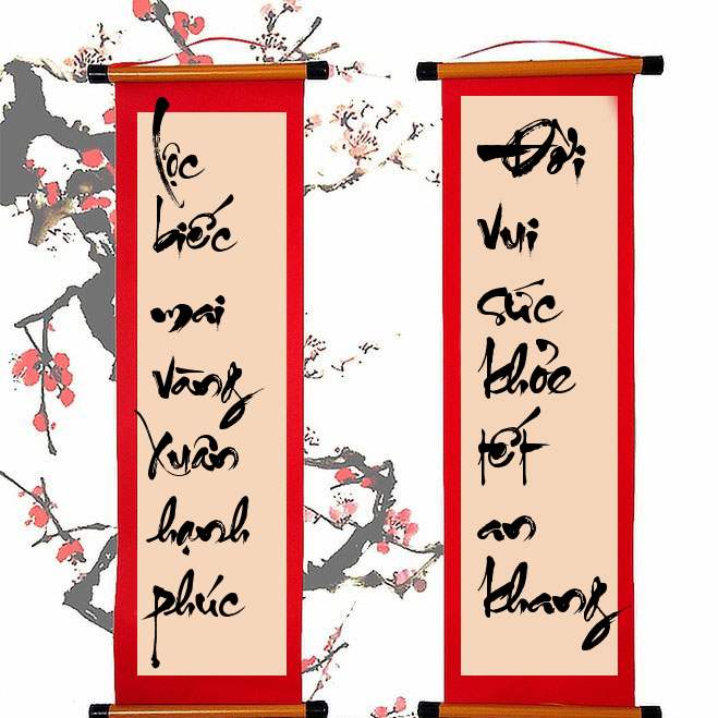 13. Năm mới hạnh phúc bình an tiến / Xuân sang vinh hoa phú quý lai.