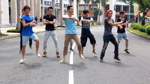 2. Ngắm các hotboy biểu diễn Gangnam Style trên phố