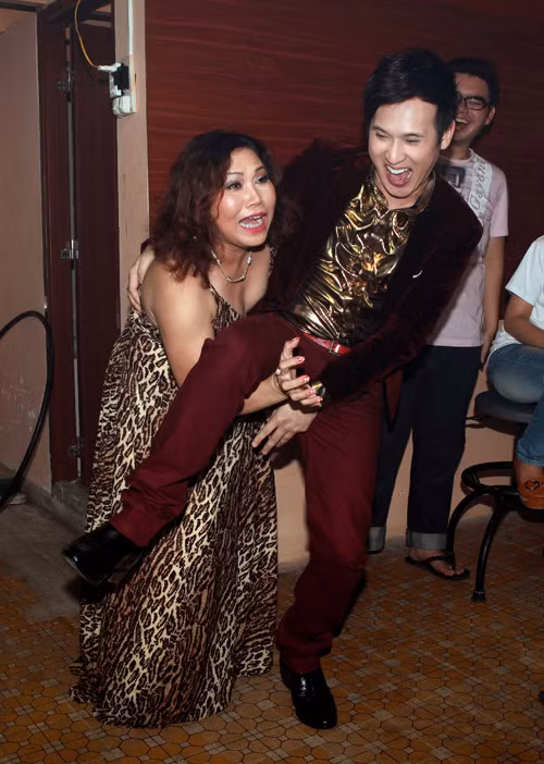| Đùa nghịch cùng Khánh Thi trên sân khấu. |