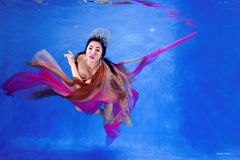 Trước đó, Thúy Nga cũng có bộ hình hài hước ở dưới nước.