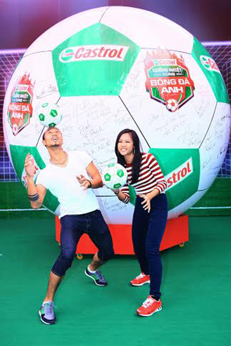| Trong sự kiện này, ngoài những câu chuyện xoay quanh tình yêu với trái bóng tròn do Suboi và Phạm Anh Khoa chia sẻ, cả hai còn hăng say chụp hình với trái bóng khổng lồ để khích lệ khán giả tham gia chương trình và dành cơ hội tới Châu Âu xem bóng đá. |