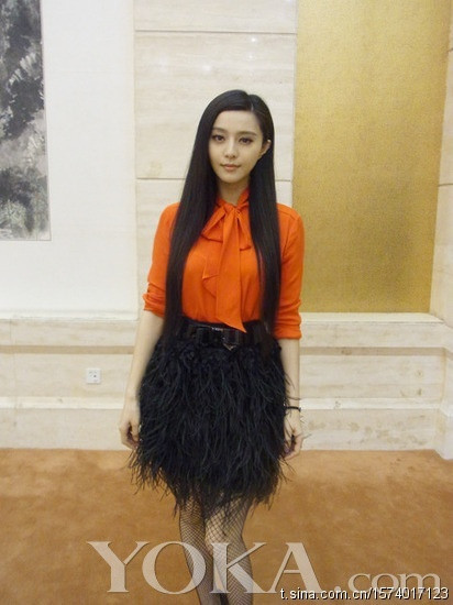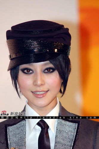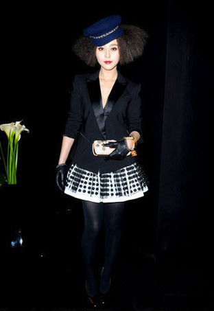 | Hình ảnh lạ mắt của Phạm Băng Băng ngày 8/11 trong buổi trình diễn thời trang Versace for H&M tại Bắc Kinh khiến người hâm mộ ngỡ ngàng. |