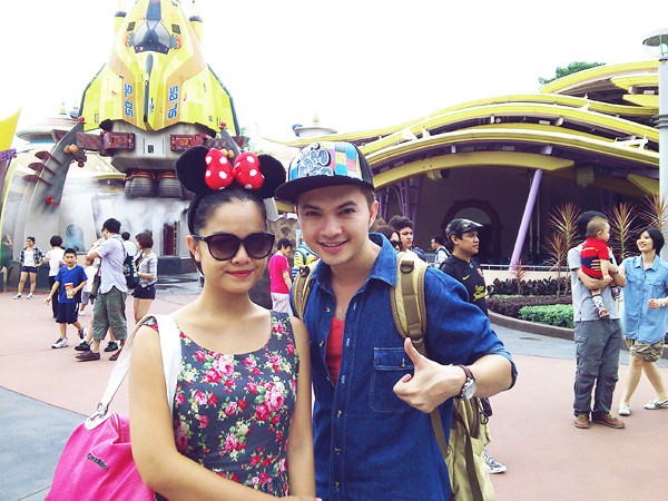 | Những ngày còn lại của chuyến đi, đôi vợ chồng dành toàn bộ thời gian để đi khám phá Hong Kong. Cũng như bao khách du lịch khác, cả hai chọn Disney Land làm điểm vui chơi. Trước ống kính, cặp đôi thể hiện tình yêu ngọt ngào bằng cái nháy mắt, chu miệng đáng yêu. |