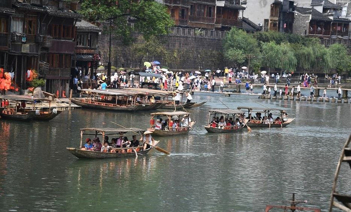 | Một khúc sông Đà Giang hiền hòa, những dãy núi xanh ngút ngàn và những tòa nhà có kiến trúc cổ đã được xây dựng từ hàng trăm năm... tạo nên khung cảnh lãng mạn tại Phượng Hoàng Cổ Trấn. Những kiến trúc cổ còn giữ lại cho đến nay đa phần đều là công trình xây dựng từ thời nhà Thanh (1644-1911). |