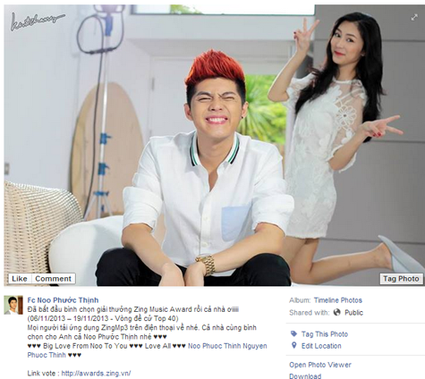 Miu Lê và Sơn Tùng M-TP – hai “tân binh” của Zing Music Awards cũng đang tích cực kêu gọi các fan ủng hộ mình trên trang cá nhân và fanpage.