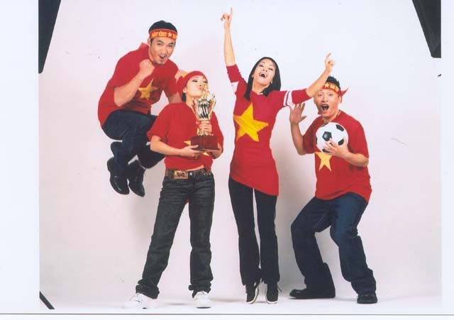| Phương Thanh, Chi Bảo, Hồng Nhung, Lam Trường chụp ảnh cổ vũ Seagame 22. |
