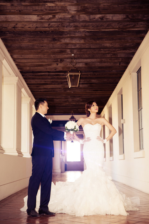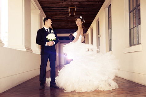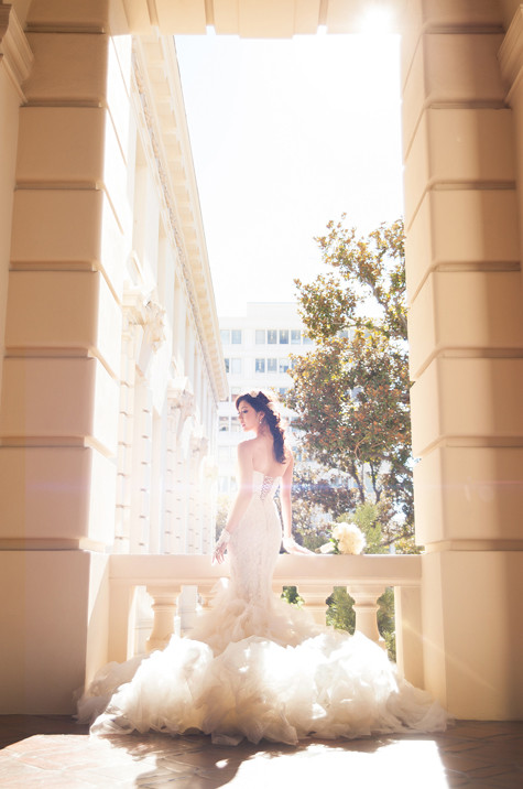 Hôm 16/1, Ngọc Quyên và vị hôn phu đã thực hiện bộ ảnh cưới tại California (Mỹ), nơi chồng cô sinh sống và làm việc. Thời tiết ấm áp cùng khung cảnh đẹp nên thơ nơi đây khiến cho đôi uyên ương vui vẻ tạo dáng trước ống kính. Chân dài phim 'Mỹ nhân kế' rạng ngời trong váy cưới trắng đắp ren với phần đuôi bồng bềnh.