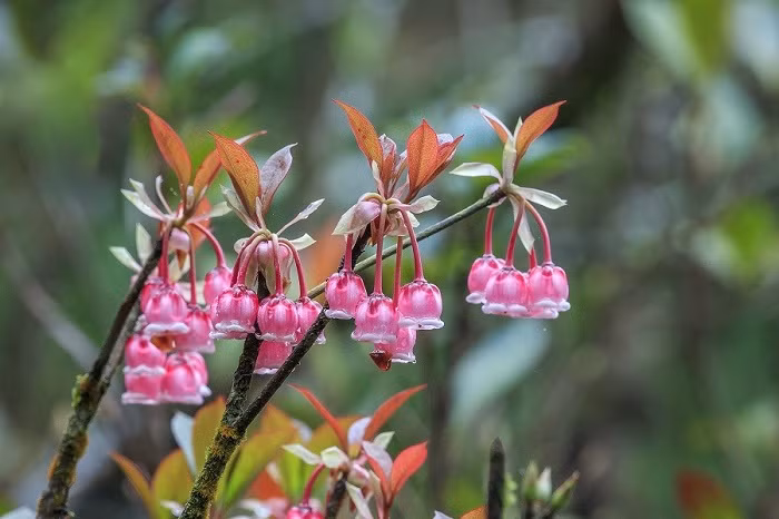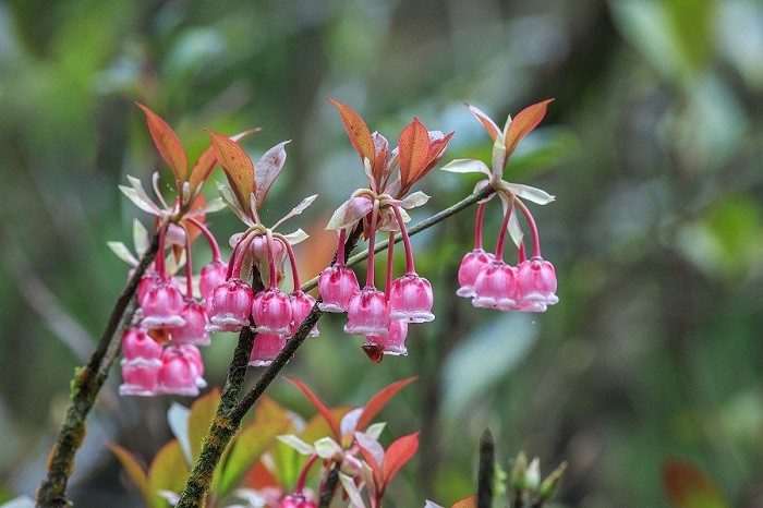 Giữa bạt ngàn những loài hoa độc đáo đua nhau khoe sắc tại đỉnh Núi Chúa, đào chuông - loài hoa báo hiệu mùa xuân mang hình chiếc chuông nhỏ khiến du khách không khỏi tò mò, mê mẩn ngắm nhìn.