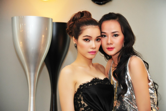 | Hai người đẹp cùng tạo dáng trước ống kính. |
