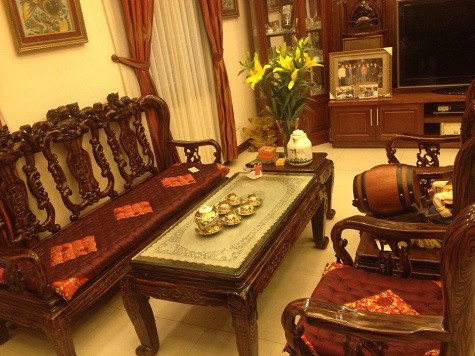 | Phòng khách trong ngôi nhà của Bảo Phương khá ấm cúng và gọn gàng. |