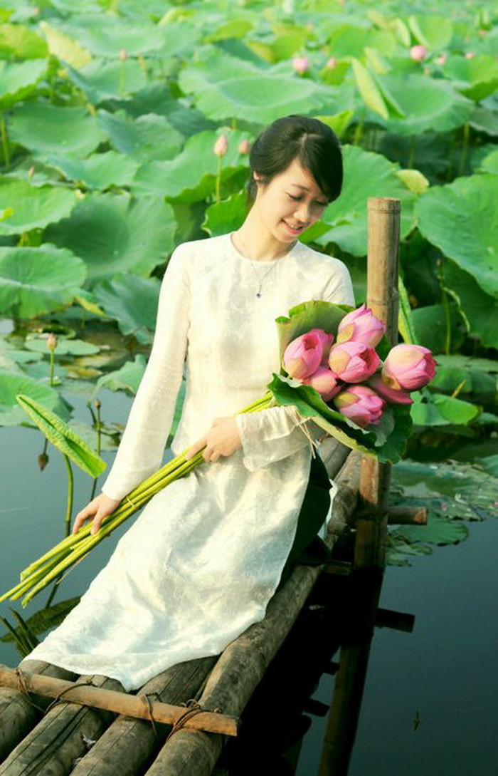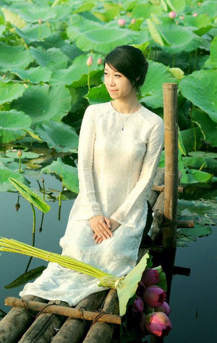 | Không chỉ là một sinh viên cá tính, năng động , Phương Thanh còn dịu dàng, thướt tha trong tà áo dài bên cánh sen |
