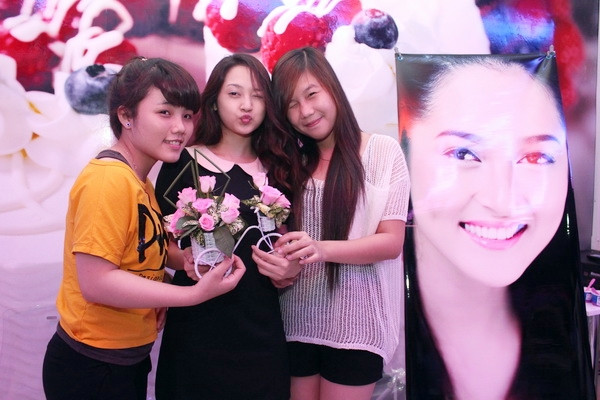 | Kết thúc, Bảo Anh chụp hình kỉ niệm bên fan hâm mộ của mình. |