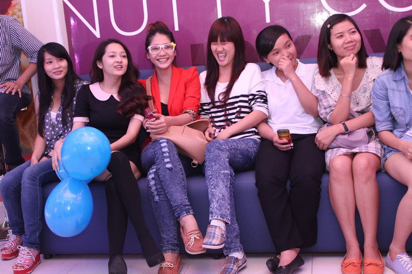 | Bảo Anh nhiệt tình tham gia trò chơi cùng fan hâm mộ. |