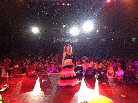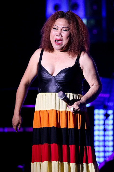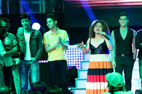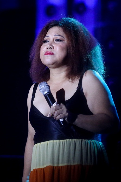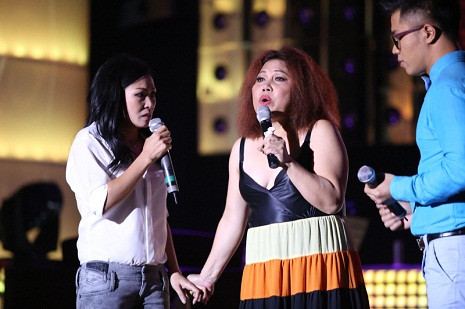 | Nữ ca sĩ nghẹn ngào nước mắt. |