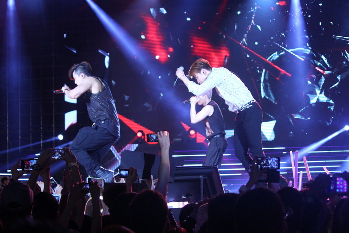 | Nickhun là một trong những thành viên được săn đón nhất nhóm. Trong đêm nhạc anh còn gây bất ngờ khi chào fan bằng tiếng Việt. |
