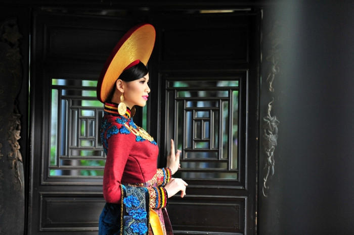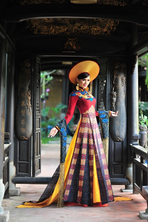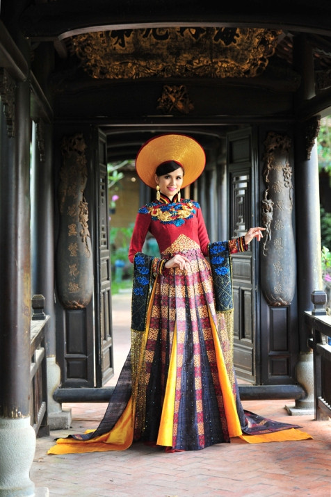 (GDVN) - Phần dự thi trang phục dân tộc tại Hoa hậu hoàn vũ, Diễm Hương sẽ diện chiếc áo dài dân tộc kết hợp với những đường nét hiện đại. Điểm đặc biệt ở bộ trang phục này là các lọai chất liệu được làm từ thiên nhiên, rất gần gũi thân thiện với môi trường. Bộ quốc phục sẽ được Diễm Hương trình diễn trong đêm thi trang phục dân tộc diễn ra vào lúc 8h tối ngày 14/12 (khoảng 7h – 8h sáng ngày 15/12 theo giờ Việt Nam).