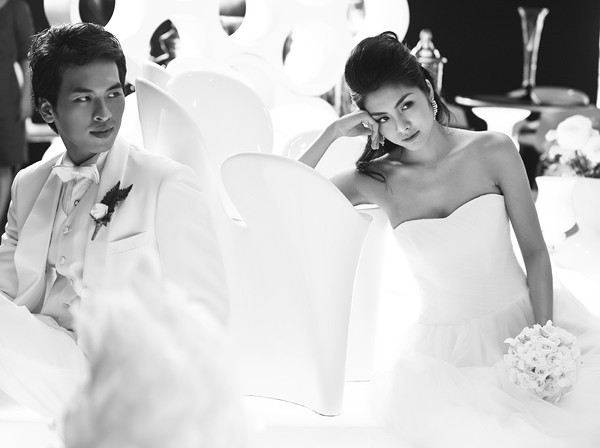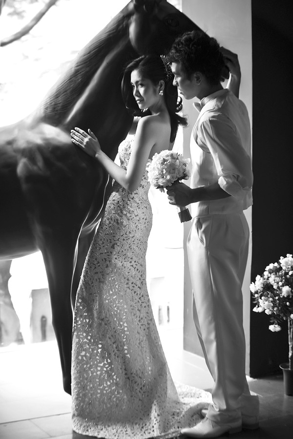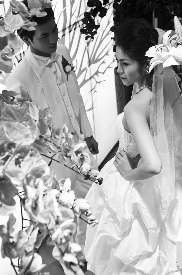 Vốn là hai người bạn thân ở ngoài đời nhưng diễn viên Tăng Thanh Hà và người mẫu Quang Tuyến rất ít khi cùng nhau thực hiện những bộ hình thời trang. Mới đây, cả hai đã trở thành 'cô dâu - chú rể' trong bộ sưu tập ảnh cưới 2011 của nhiếp ảnh gia Phạm Hoài Nam. Với tone màu đen trắng và các góc ảnh đơn giản, Hà Tăng toát lên vẻ quyến rũ và quý phái, còn Quang Tuyến thì bảnh bao, đắm say ngắm 'người tình'.