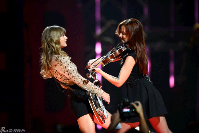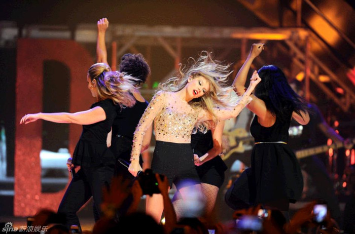 | Trong trang phục lấp lánh kim sa, tóc để buông và trang điểm như một nàng công chúa thực sự, Taylor Swift đã cháy hết mình cùng người hâm mộ, qua các ca khúc gắn liền với tên tuổi của cô và single mới nhất “We are ever getting back together”. |