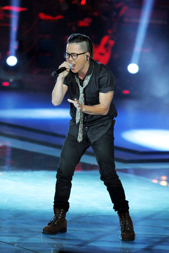 HLV Hồng Nhung khen: ‘Thái Châu hôm nay đã khẳng định bản lĩnh rocker. Điểm cộng của em là phần phối điện tử rất thời thượng của anh Quốc Trung’.