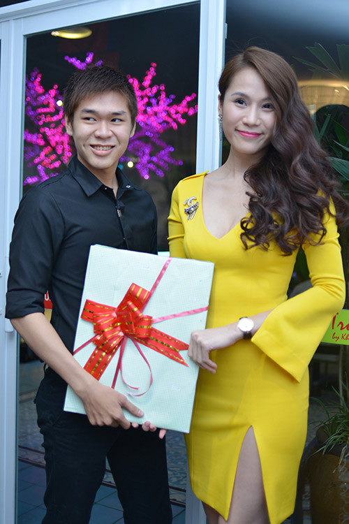 | Nhiếp ảnh gia Lê Thiện Viễn, người thường xuyên chụp những bộ ảnh đẹp cho á hậu Hà Nội 2005 Thái Hà cũng đến chung vui. |