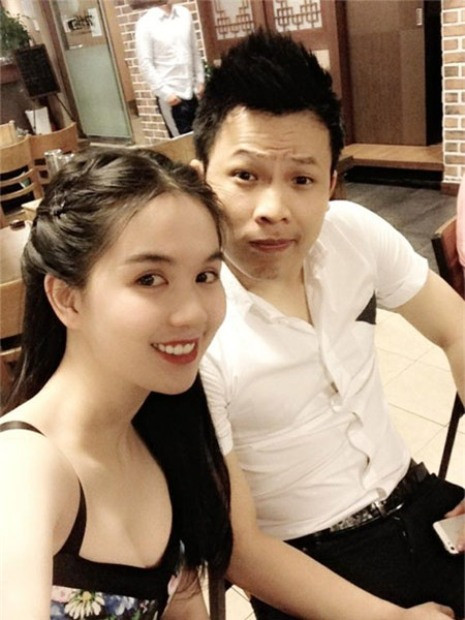 | Ngọc Trinh và ông bầu đã có những giây phút vui vẻ bên nhau |
