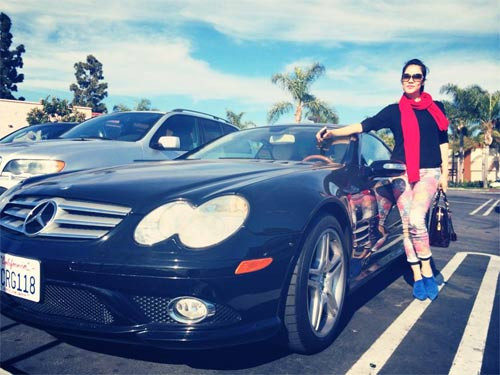 | Ca sĩ Thu Phương bên chiếc siêu xe chồng tặng nhân dịp Valentine. |