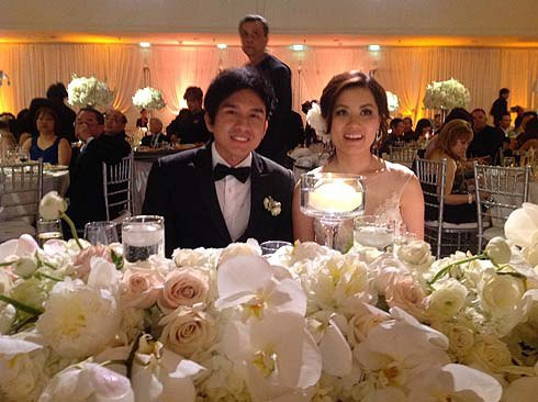 | Không khí tiệc cưới sang trọng nhưng không kém phần ấm cúng của anh Bo Đan Trường. Được biết, cô dâu chú rể đã phải chi 20.000 USD cho việc mua hoa trang trí bàn tiệc cưới. |