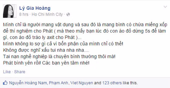 Trả lời trên một trang tin sau sự cố, Tấn Phát cho biết uống nhầm axit là sự cố nghề nghiệp đầu tiên mà chàng trai này gặp phải. Ngay cả trong buổi tổng duyệt, anh cũng đã làm tốt và không gặp sự cố Tuy nhiên, trong đêm thi trực tiếp, vì tâm lý căng thẳng, Tấn Phát đã mắc sai lầm. Khi uống ly thứ hai, phát hiện là axit anh đã nhổ ra và uống liên tục những ly nước còn lại nên chỉ bị bỏng nhẹ ở môi. Axit sunfuric trong tiết mục này đã được pha loãng nên không gây nguy hiểm.