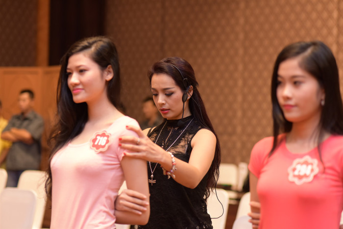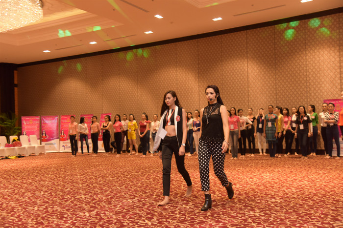 Trong suốt thời gian tập luyện ngày đầu tiên, ekip Thúy Hằng đã tận tình chỉ bảo cho các thí sinh, giúp họ có được sự tự tin và dáng đi đẹp nhất khi bước trên sàn diễn.